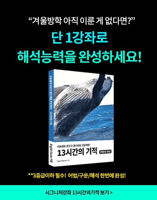 수능영어 필수 어법/구문/해석이 한번에 완성되는 13시간의기적으로 본격적인 영어실력 폭발을 시작하세요.