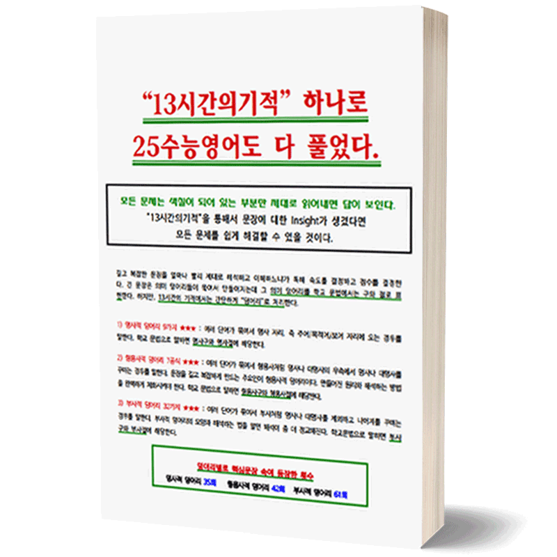 13시간의기적을 마스터하면 수능필수어법/구문/문장해석능력이 탄탄하게 잡힙니다.